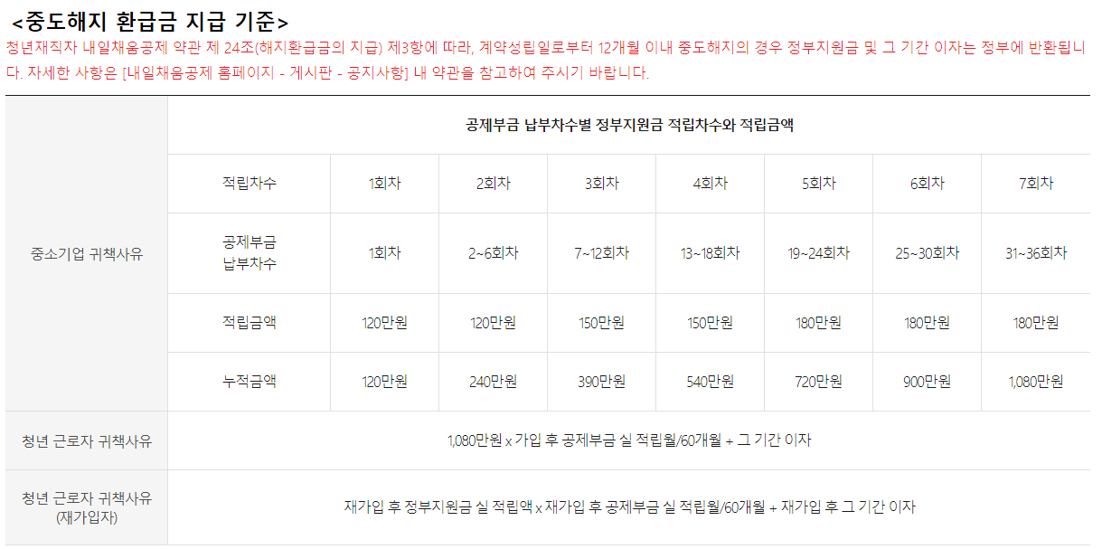 이게 일반적인 사유일텐데 이 때에는 정부지원금 적립 차수에 따라 지급이 달라진다.