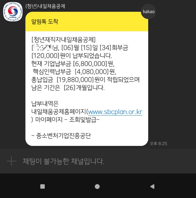 위에 표를 보면 적립차수가 정부지원금 적립 부분이고 바로 아래 공제부금납부차수가 근로자가 납입한 횟수를 나타낸다.