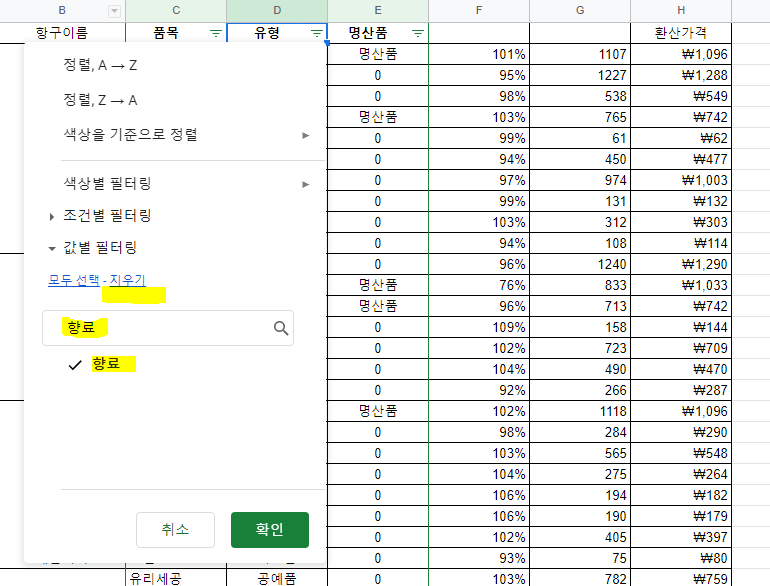 검색 방법은 필터 클릭 후 지우기 -> 유행군 체크 후 확인 눌러보시면