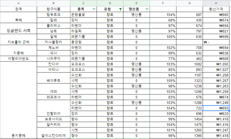 현재 스크린샷을 찍지 못해서 작성안된 도시들이 있는데,