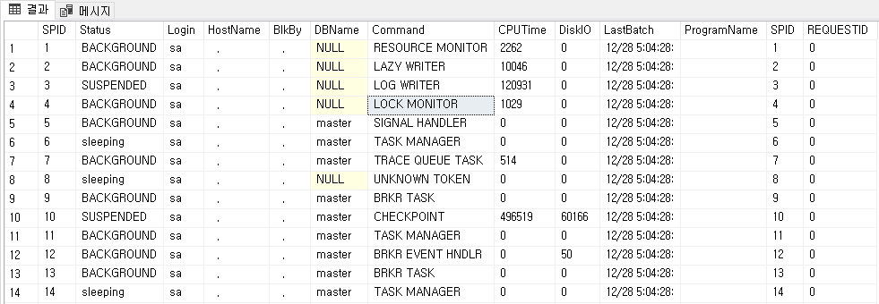 현재 락 걸린 세션 ID를 확인할 수 있도록 SP_LOCK를 제공합니다. 또 다른 함수로는 SP_WHO2 도 제공됩니다.