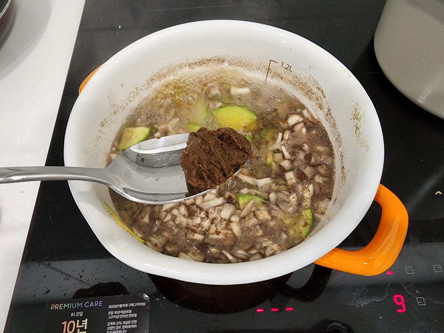 애호박과 버섯 등을 먼저 넣고 그 후에 소고기를 넣어주면 된답니다.